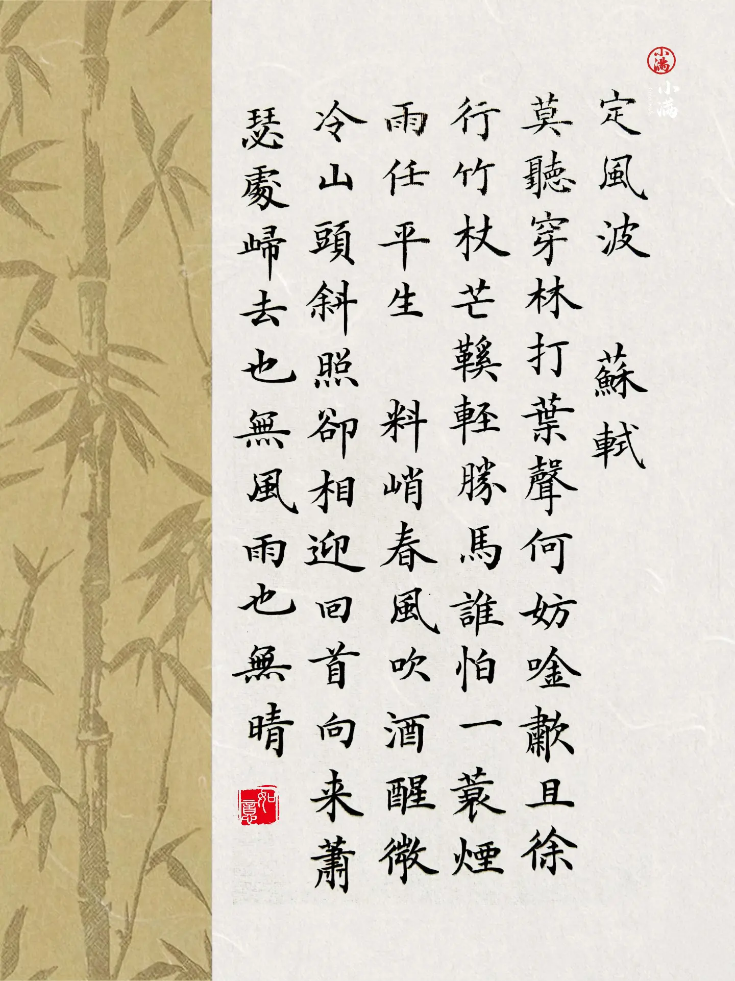 竹杖芒鞋輕勝馬,誰怕 一蓑煙雨任平生。
