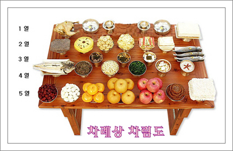 혼신(魂神)을 모신 제례음식은 생자의 일반음식과는 다른데, 신이 기피(忌避)하는 과일인 복숭아나 “치”字가 든 생선은 쓰지 않는 것도 특징이다.